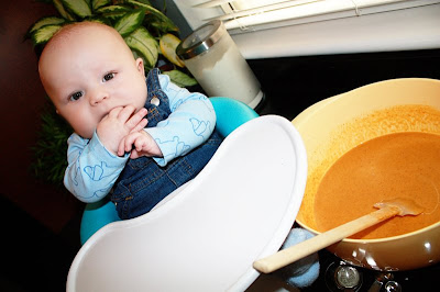 He's the cutest ball of dough ever to be whipped up by two people. Was that sick? Wasn't meant to be. In any case, I think he's got Rachel's eyes and the cheeks John had fresh off his mission. So what you've got is two beautiful jewels peering out of ten pounds of batter. Squish him for me.